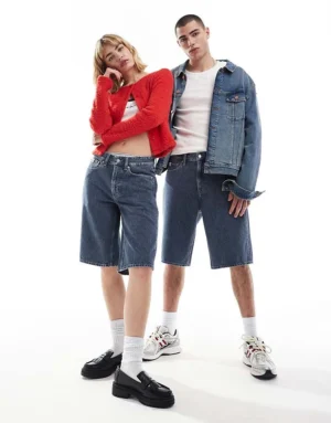 Calvin Klein Jeans 90s Straight Skater Shorts In Grey Wash – ASOS Exclusive For Unisex Grey Denim