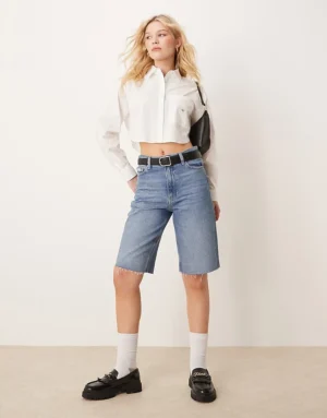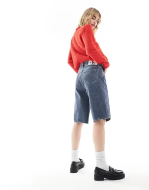 Calvin Klein Jeans Longer Bermuda Jorts In Light Wash For Women Denim Light